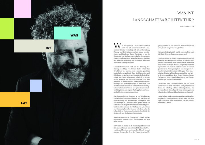 Zu unserem Firmenjubiläum haben wir ein Magazin erstellt. Dargestellt ist hier nicht nur unsere Bürogeschichte, sondern auch Themen welche uns aktuell, aber auch zukünftig in der Landschaftsarchitektur beschäftigen.