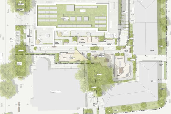 Wo möglich sind Dachbegrünungen vorgesehen. Es wird eine Vielzahl heimischer und klimagerechter Bäume geben, die gemeinsam ein Arboretum bilden. Beschriftungen am Stamm der Gehölze helfen den Schülern, die Bäume voneinander zu unterscheiden, kennen und bestimmen zu lernen. Das vielfältige und artenreiche Pflanzkonzept trägt positiv zum Mikroklima bei und schafft Lebensraum für Pflanze und Tier.