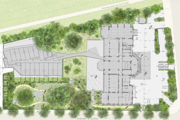 Auf Grundlage der Historie des Gesamtensembles entsteht eine neue, zeitgemäße Freianlage welche in der Gestaltung und der Materialität Bezüge zur ursprünglichen Parkanlage aufnimmt. Dabei sind unterschiedliche Nutzungen und Bereiche umgesetzt worden.