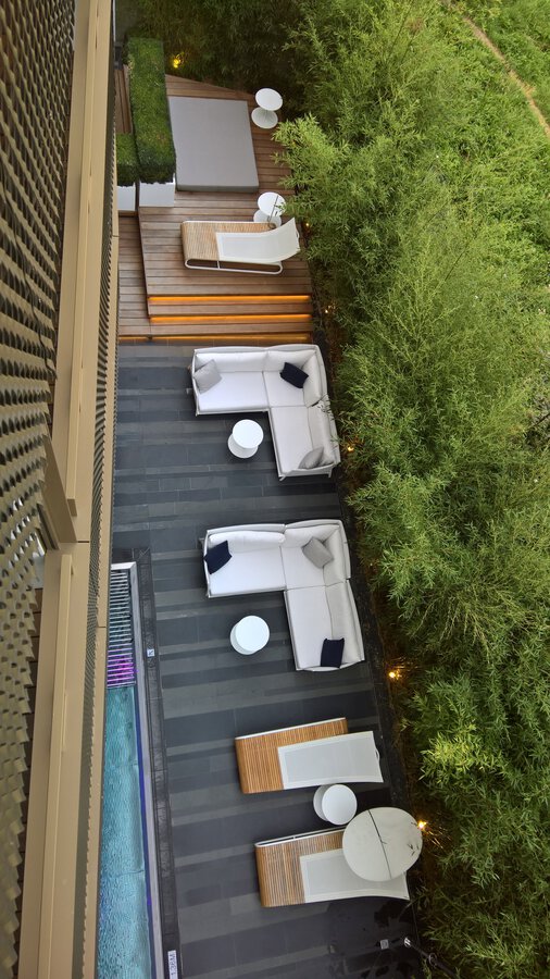 - Parkähnlicher Garten mit Integration des Neubaus und des Verbindungsbaus mit hoher Aufenthaltsqualität und Nutzungsmöglichkeiten für den Gast des Hotels