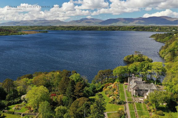 In direktem Gebäudebezug sind drei neue Gartenterrassen entstanden. An der Nordseite gibt es sowohl eine sehr intime, von intensiver Pflanzung umgebene Terrasse, als auch eine erhöht liegende Terrasse, welche interessante Blickbeziehungen in den Park ermöglicht. Auf der Gebäude-Südseite bietet die neue Restaurant-Terrasse den Hotelgästen beim abendlichen Dinner einen wunderschönen Blick über die Pferdekoppeln des Anwesens bis zum Gap of Dunloe.