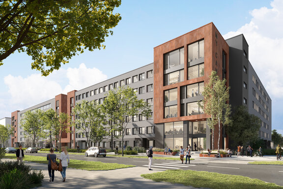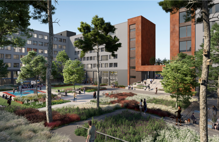 Die versiegelte Bestandsfläche wird reduziert und durch neu entstehende grüne Freiräume (naturnah) gestaltet. Die neu angelegte und vielfältige Vegetation leistet außerdem einen positiven Beitrag zum Stadtklima.