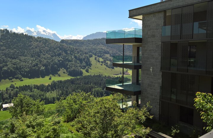 Die Pflanz- und Freiflächen im Bauvorhaben Panorama Residence Suites sind von unterschiedlicher Ausprägung und Eigenart. Der wichtigster Grundsatz ist dabei das Thema „Einbindung in den Naturraum Bürgenberg“ sowie die Weiterentwicklung des Themas „Botanikum Bürgenberg“, also die gartengeschichtliche Entwicklung des Bürgenstock Resorts.