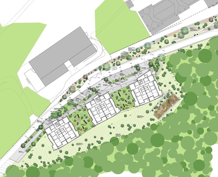 Diese Hintergründe führen zu einer differenzierten Betrachtung der Teilräume und unterschiedlichen Gestaltungs- und Pflanzbereichen. Insgesamt lässt sich festhalten, dass die Vegetation und Ausstattungsqualität zu den Rändern jeweils abnimmt. Hier spielt die Einbindung in die Landschaft die tragende Rolle. Im Bereich der Vorgärten und der Flaniermeile ist eine intensivere Bepflanzung geplant. Vorbild ist hier die vorhandene Pflanzenauswahl im Innenbereich des Bürgenstock Resorts, also das Erbe der gartenarchitektonischen Geschichte.