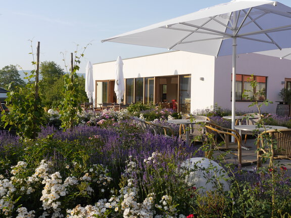 Das Grundstück des Weingutes ist im Bestand durch den gewerbsmäßig betriebenen Obstanbau geprägt. Unter zahlreichen Obstbäumen und landschaftstypischen Gehölzen finden sich Wegeverbindungen, kleine Weinlauben zur selbständigen Nutzung sowie die Einrichtungen der Gastronomie.