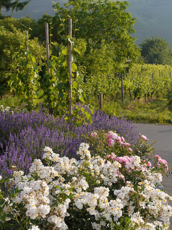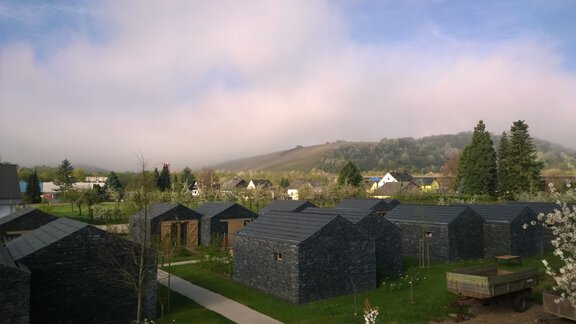 Die Entwässerung der Freianlagen wird über ein seitliches Gefälle in Wegen und Straßen geregelt. Die Mauern werden nach dem Vorbild der gebietstypischen Weinbergmauern als Trockensteinmauern ausgebildet. An den Wegen stehen allen Gästen kleine Weinlauben zur Verfügung. Diese orientieren sich gestalterisch an den einfachen Gartenlauben, welche man an den Ufern der Mosel häufig vorfindet. Alle Materialien orientieren sich an den Vorbildern der Umgebung.